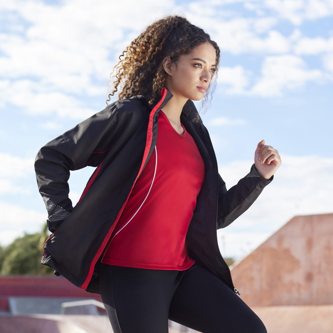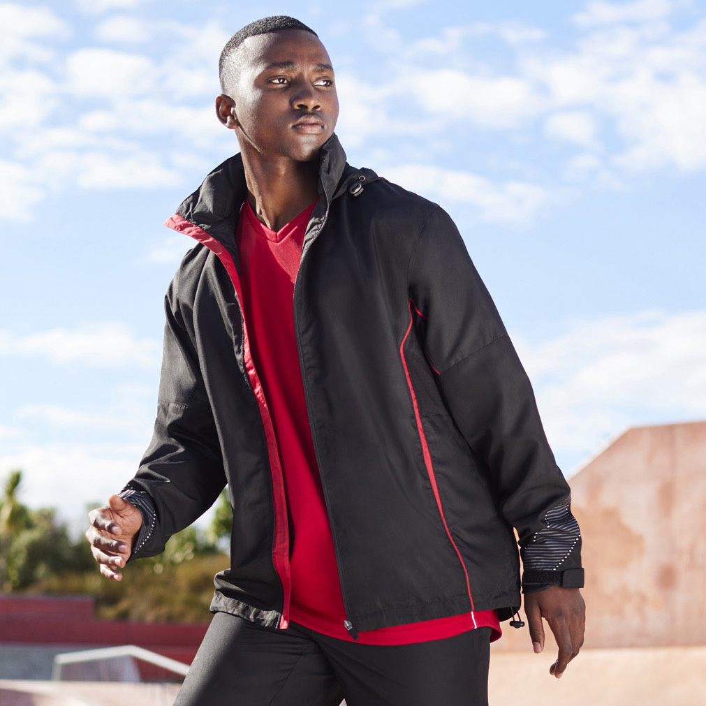 • Outer: 100% Polyester Ripstop with micro-fibre panels; Lining: Soft-touch single jersey (body); Lining: 100% Polyester Taffeta (sleeve)